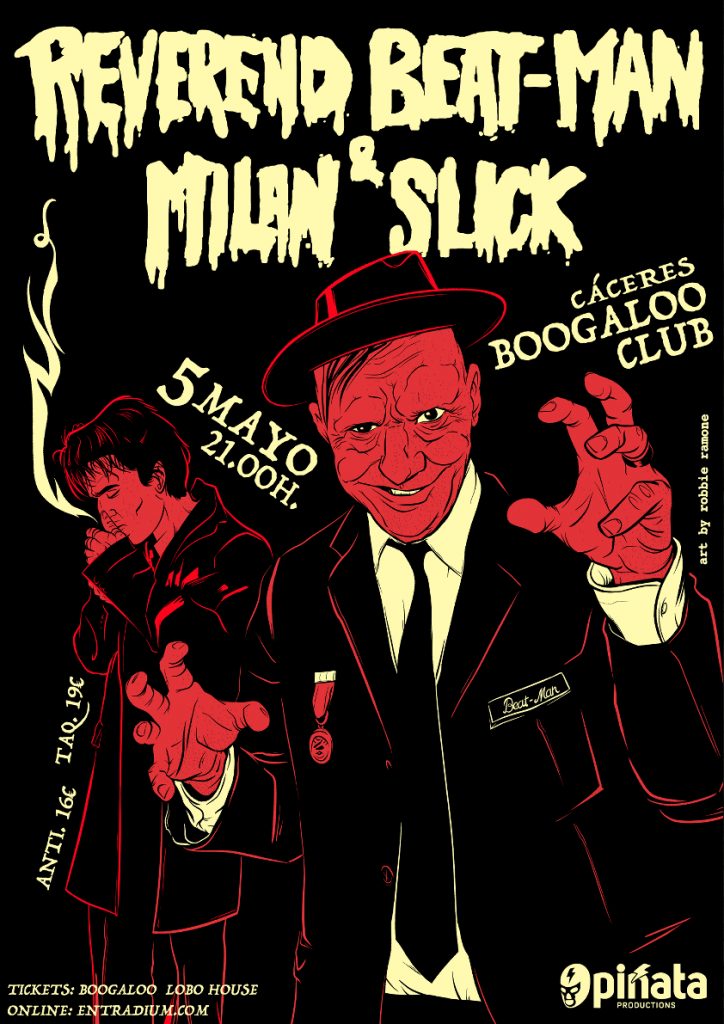 Tras colaborar en bandas sonoras y giras europeas, estos dos talentos nos presentan un cruce de energías: el rock primitivo y crudo de Reverend Beat-Man se combina con la sofisticación oscura de Milan Slick, generando un sonido que es a la vez brutal y seductor, entre garage, goth trash y punk rock.
